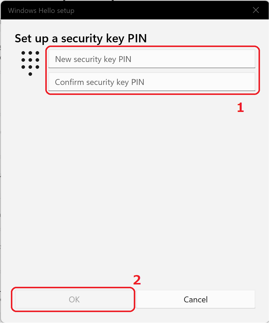 When asked to confirm your identity, enter the PIN you set for the security key and click the “OK” button.