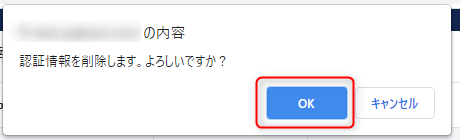 認証情報一覧から削除したい名前を探し、対象行の削除アイコンをクリックします。